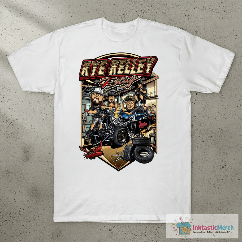Show off your passion for speed and style with the Kye Kelley Racing Chaos T-shirt from InktasticMerch. Designed for comfort and built to last, this tee features a bold, high-quality graphic that captures the thrilling energy of Kye Kelley Racing, ensuring your enthusiasm is always proudly displayed. Crafted from a premium cotton blend, its ultra-soft and breathable fabric offers superior comfort for everyday wear.