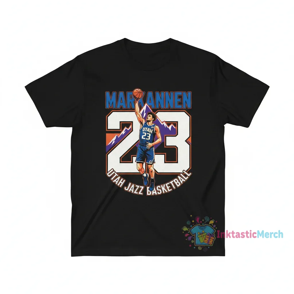 Show your love for the Utah Jazz and Lauri Markkanen with this awesome basketball shirt, featuring a high-quality, durable print of his name and number on premium, soft-touch fabric for all-day comfort. This stylish, breathable tee boasts a classic unisex fit and is perfect for game days or everyday wear, letting everyone know who your favorite player is. Explore more fan favorites and trending styles at inktasticmerch.com.