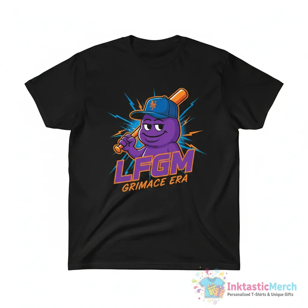 Show your New York Mets pride with the special LFGM Grimace Era baseball shirt, crafted from ultra-soft, high-quality fabric for exceptional comfort and durability. This tee, perfect for any fan, features a unique design that captures the spirit of the LFGM era, making it a stylish addition to your game-day or casual wear. You can find this and more at inktasticmerch.com.