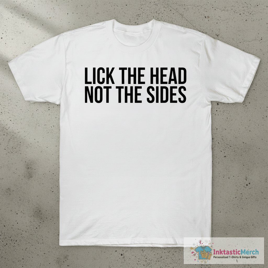 Show off your unique sense of humor with the “Lick the head not the sides shirt.” This eye-catching tee features a bold and playful design that’s sure to turn heads and spark conversations. Made for comfort and style, it’s the perfect addition to any casual wardrobe. Whether you’re out with friends or just lounging at home, this shirt lets you express your personality with a touch of wit. The high-quality print ensures the design stays vibrant wash after wash, making it a lasting favorite.