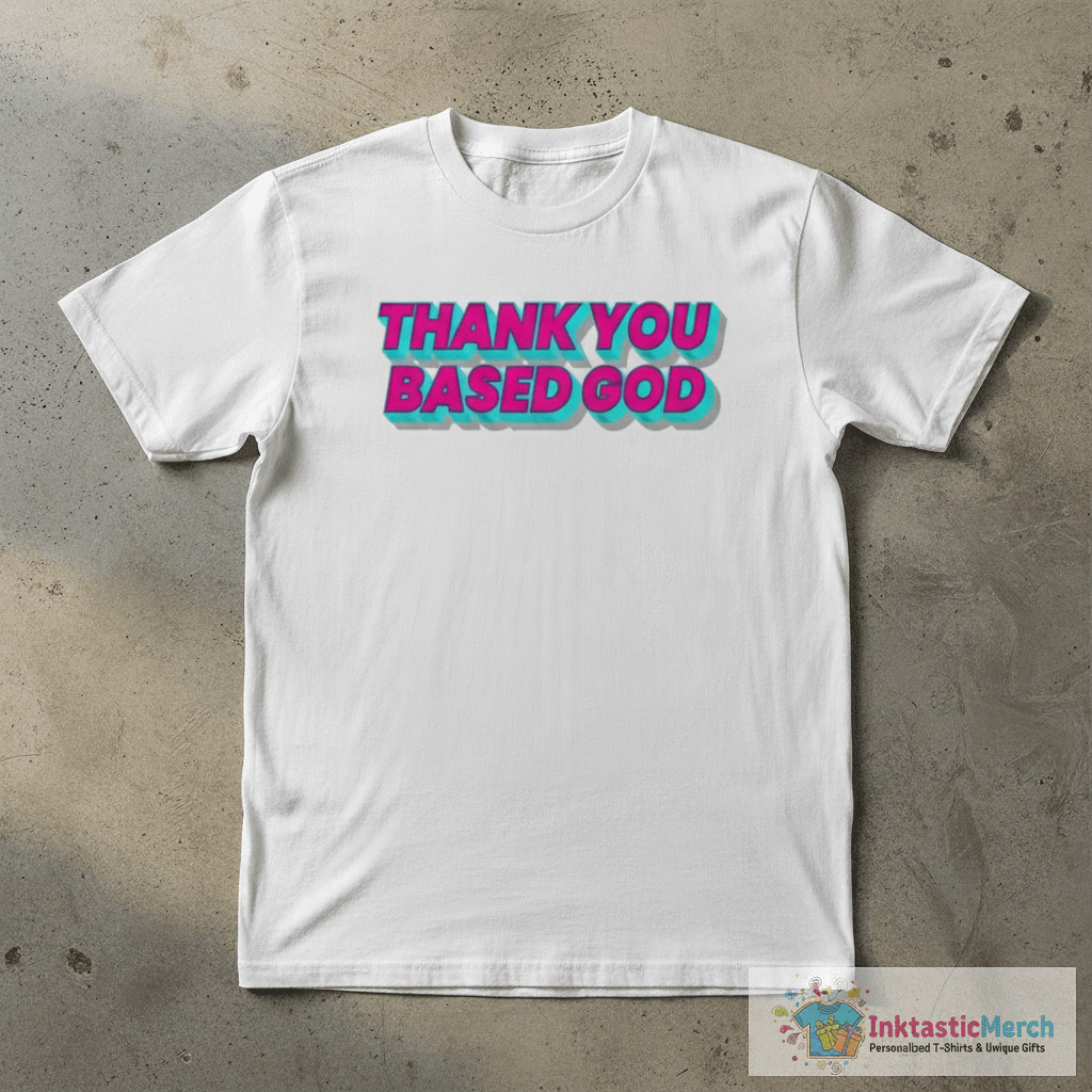You’ll absolutely love the feel and look of this T-shirt. It’s made from super soft, high-quality fabric that feels amazing against your skin, making it comfortable enough to wear all day long. The design celebrates the “Thank You BasedGod” era, bringing a vibrant and positive vibe to your outfit. It’s a versatile piece that easily pairs with jeans, shorts, or your favorite casual wear, allowing you to express your personal style effortlessly. This shirt is more than just fan merchandise; it’s a comfortable and stylish tribute to an influential artist.