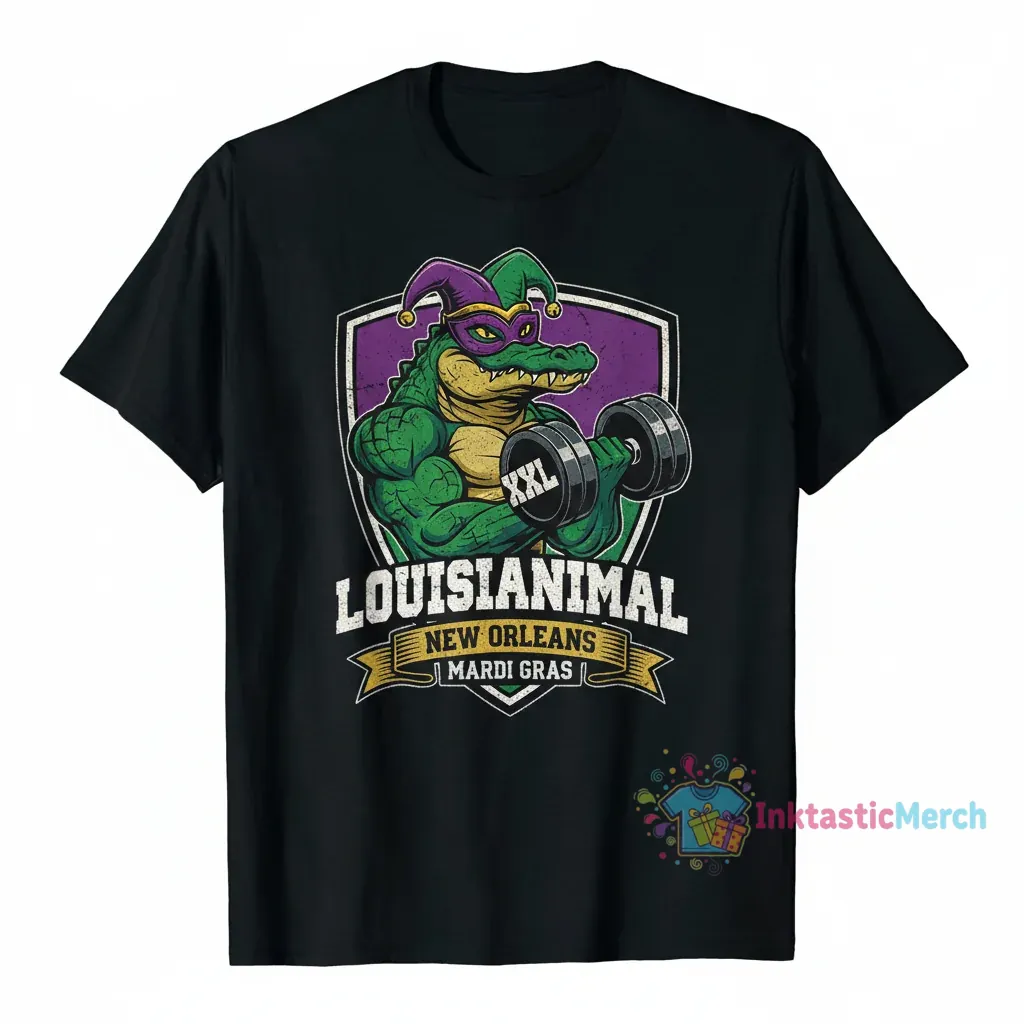 Show your love for the Crescent City with the Louisianimal XXL New Orleans Louisiana Mardi Gras T-shirt from InktasticMerch. This heavyweight tee is designed for comfort and durability, making it ideal for celebrating the vibrant spirit of Mardi Gras. Crafted from premium, soft cotton, this shirt is built to last, allowing you to wear your Louisiana pride season after season.