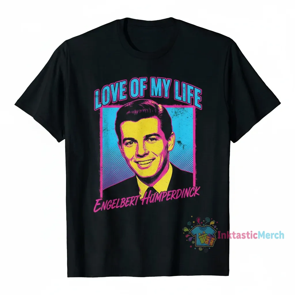 Showcase your appreciation for timeless music with the Love of My Life Engelbert Humperdinck T-Shirt, a must-have for any devoted fan. This classic tee celebrates the legendary crooner, making it a perfect addition to your casual wardrobe or a thoughtful gift for a fellow admirer.