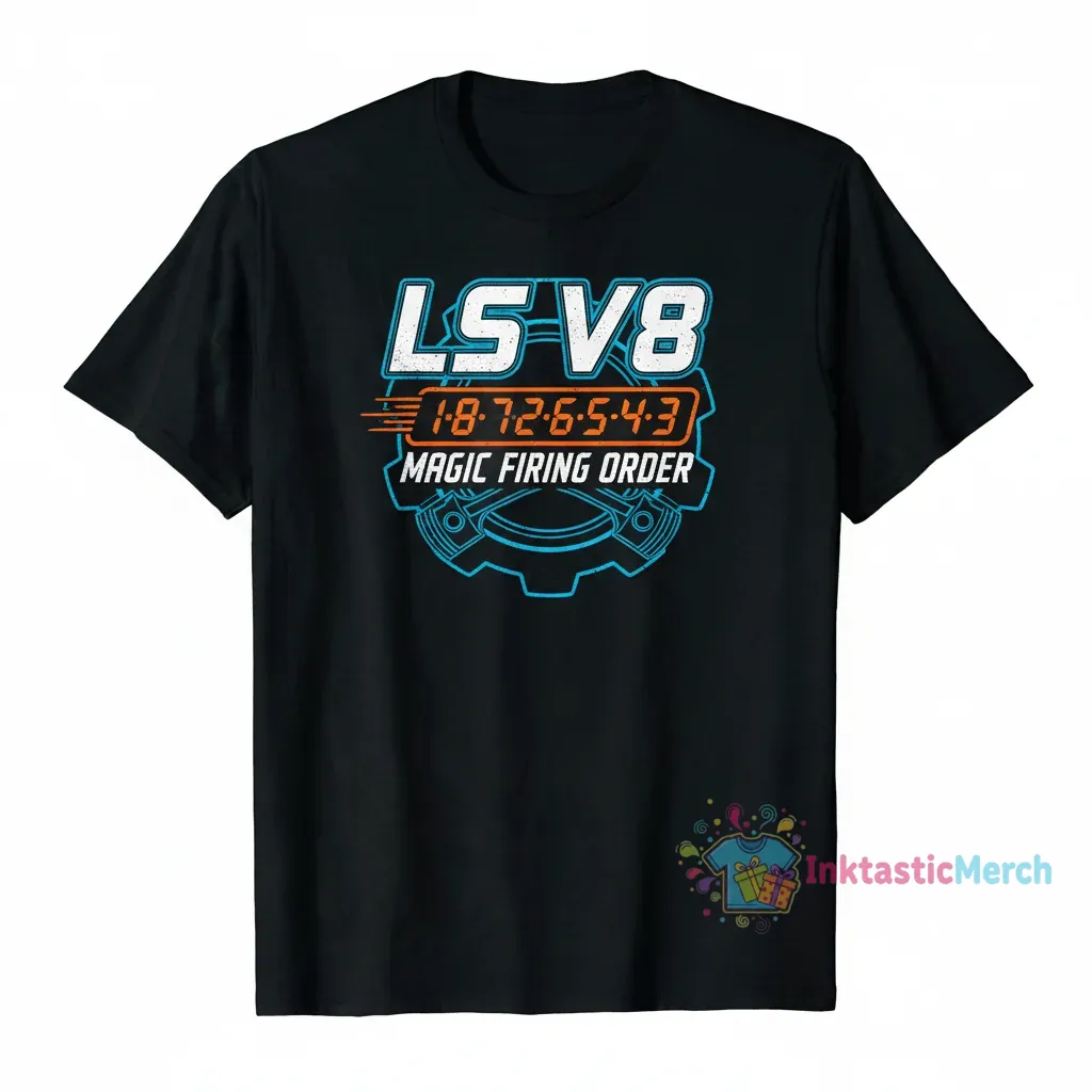 Upgrade your everyday style with the LS V8 Magic Number T-Shirt from InktasticMerch. This classic fit tee in sleek black showcases a bold “Magic Number” graphic celebrating the V8 engine, perfect for automotive enthusiasts. Engineered from premium, pre-shrunk 100% cotton, it guarantees lasting comfort and a perfect drape wash after wash.