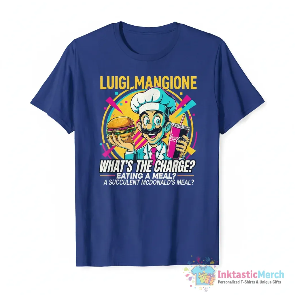 Bring your style to life with the Luigi Mangione What’s the Charge Eating a Meal a Succulent McDonald’s Meal shirt today!