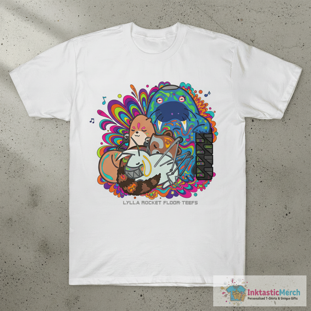 - Unique and vibrant Lylla Rocket Floor Teefs artwork