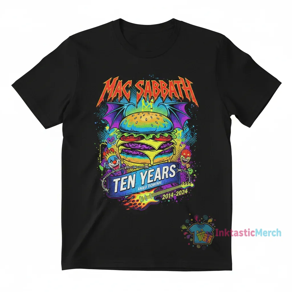 Celebrate a decade of musical rebellion with the official Mac Sabbath 10 Year Anniversary Tour Shirt. This isn’t just a souvenir; it’s a statement piece designed for true fans who demand both iconic style and lasting quality. Forget flimsy fan merch that fades after a few washes. We’ve engineered this tee to keep pace with your active lifestyle and your unwavering dedication to the Clown/Burger-themed metal masters. Rock this shirt and embody the spirit of Mac Sabbath, from the front row to your daily grind. It’s time to own a piece of history that looks and feels incredible.