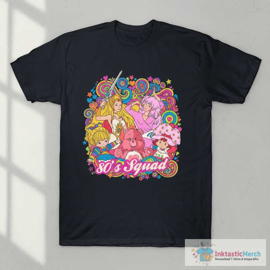 Fans of 80s pop culture, movie buffs, cartoon lovers, retro enthusiasts, and anyone seeking a comfortable and stylish casual t-shirt. It’s also a fantastic gift idea for friends and family who appreciate vintage vibes and unique graphic tees.