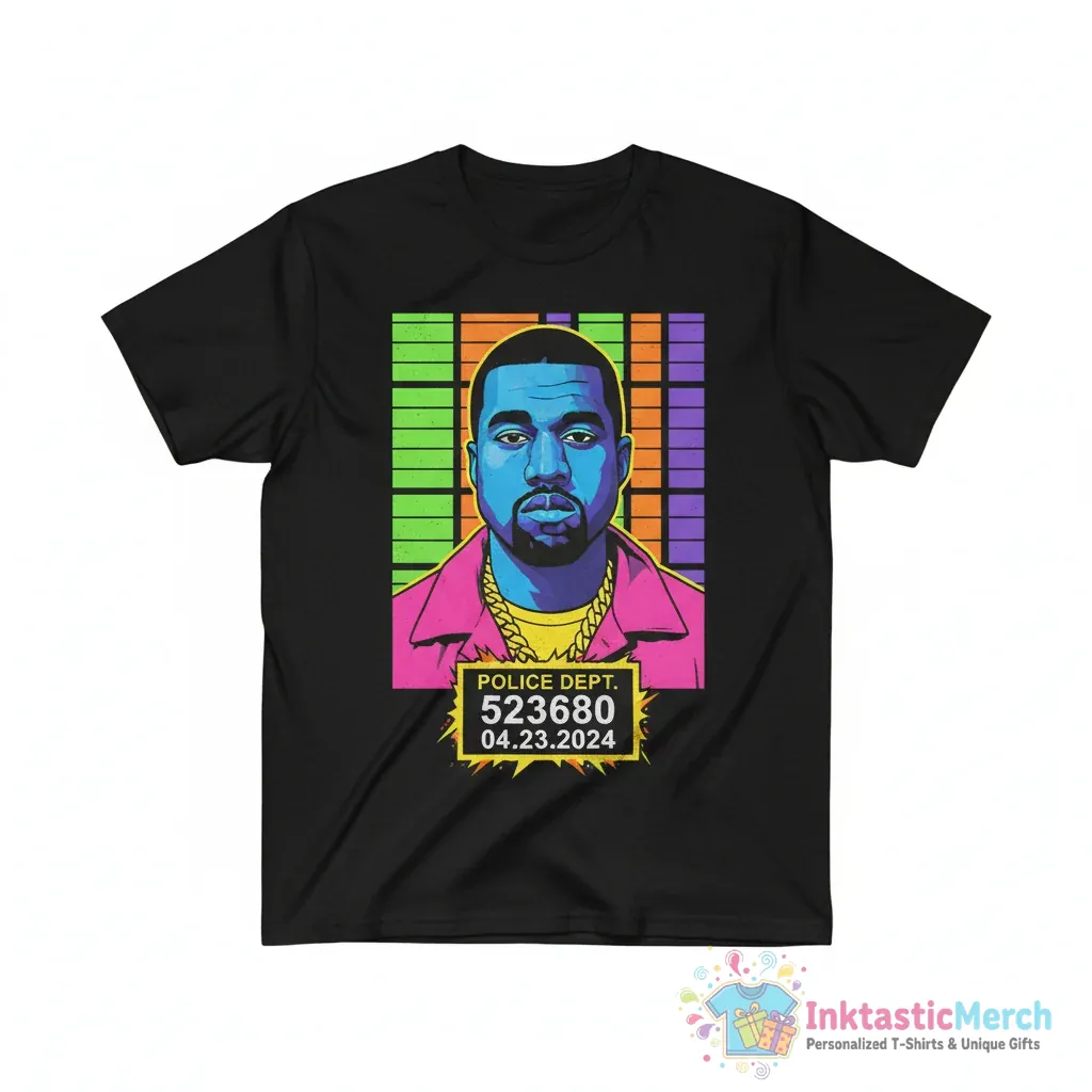 Show off your unique style with the Made Up Mugshots: Kanye West T-shirt, crafted for ultimate comfort and durability. This premium tee features eye-catching artwork and is designed to be a favorite in your wardrobe, available from inktasticmerch.com. Its classic design and soft feel make it perfect for everyday wear, allowing you to celebrate your favorite artist in style.