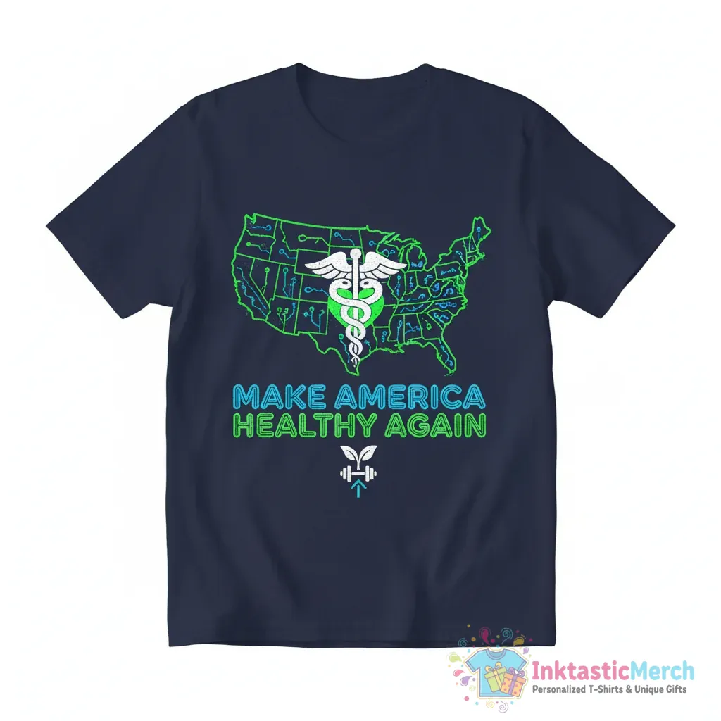 This shirt is ideal for health enthusiasts, patriots, and anyone who wants to advocate for a healthier lifestyle in the USA. It’s a fantastic conversation starter at community events, rallies, or casual get-togethers. Gift it to friends and family who share your passion for health and country, or wear it yourself to inspire positive change.