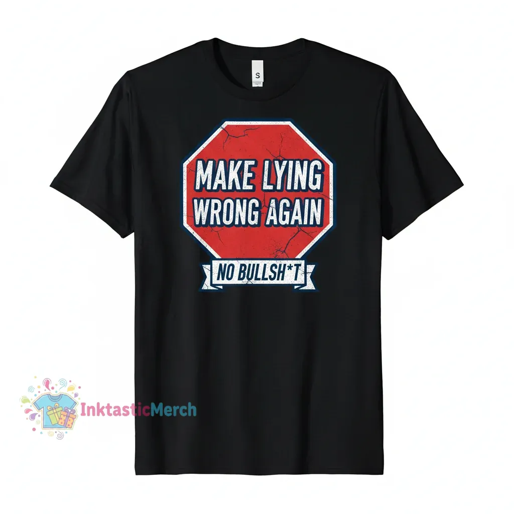 Make Lying Wrong Again. This isn’t just a slogan; it’s a declaration. Inspired by the timeless pursuit of truth and integrity, this design embodies a commitment to authenticity. It’s for those who believe in speaking their mind and standing firm in their convictions. Wear it as a reminder to yourself and a subtle nudge to the world that honesty is always the best policy.