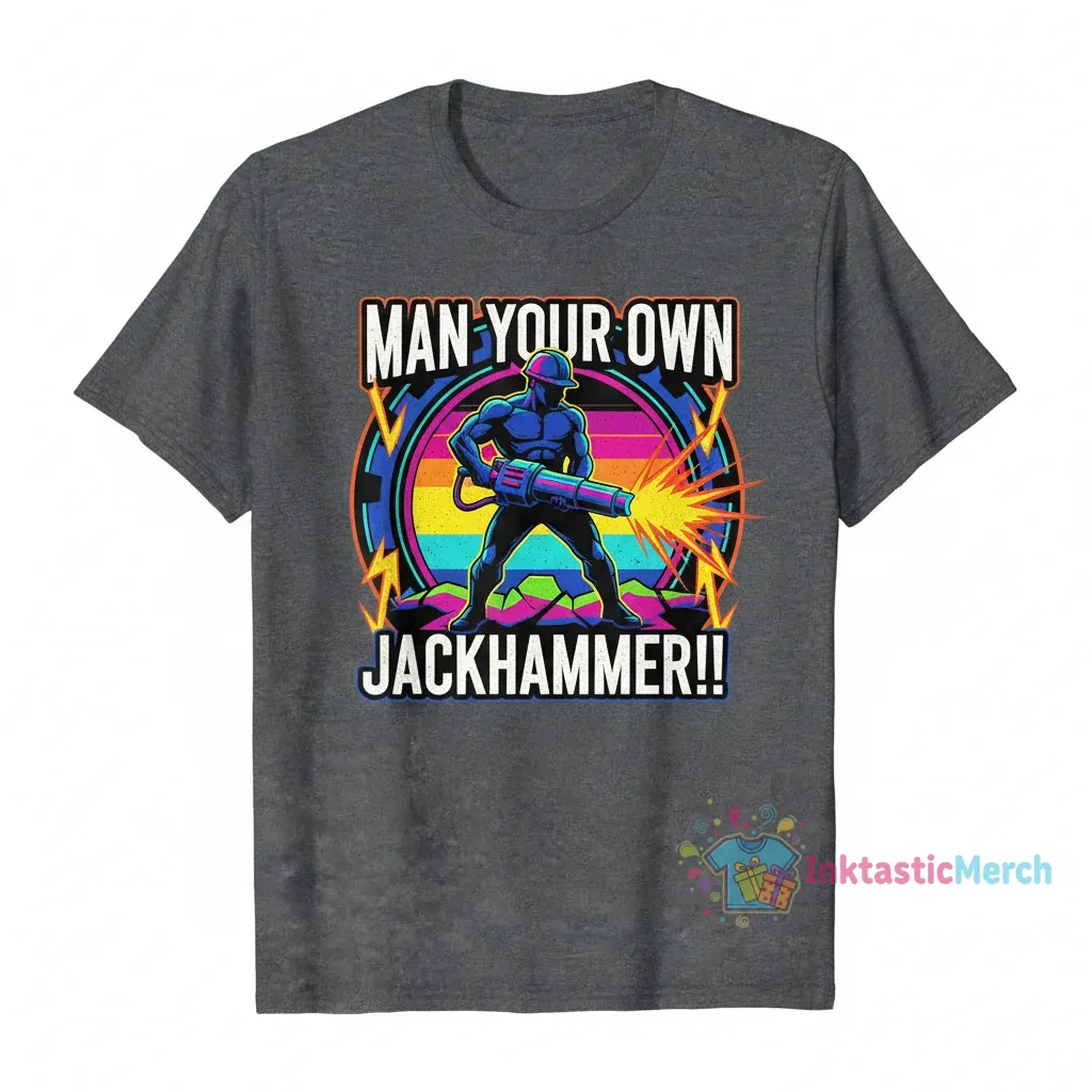 The MAN YOUR OWN JACKHAMMER!!! Essential T-Shirt features a classic, relaxed unisex fit that looks great on everyone. It’s effortlessly versatile, pairing perfectly with your favorite jeans, shorts, or even layered under a jacket. This tee is your go-to for casual weekends, busy weekdays, grabbing coffee with friends, or expressing your unique street style. It also makes a fantastic, impactful gift for the go-getter in your life.