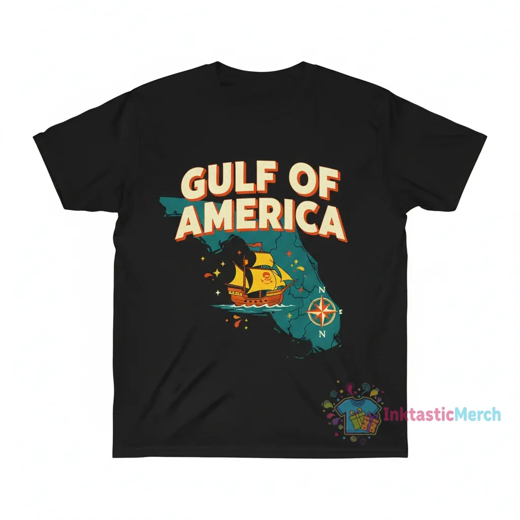 This shirt is perfect for the modern adventurer, the history buff, the travel enthusiast, or anyone who appreciates unique, artful apparel. It’s for the individual who loves to express their passions through their clothing and seeks comfort without compromising on style. Ideal for gifting to friends and family who have a connection to the Gulf of America or simply enjoy eye-catching graphic tees.