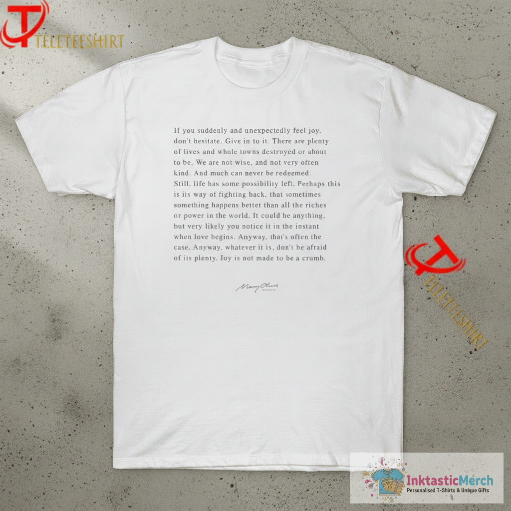 Bring your style to life with the Mary Oliver Don’t Hesitate T-shirt today!
