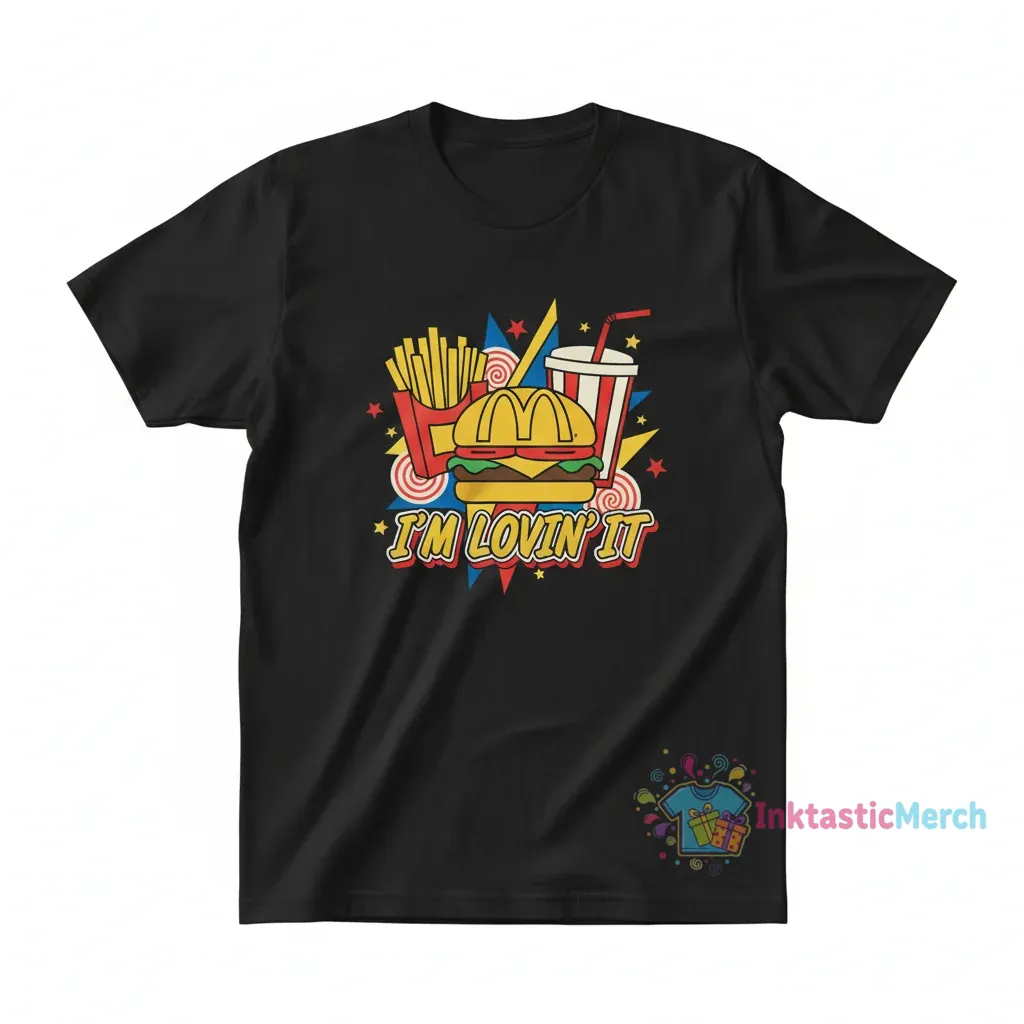 Show your love for the iconic McDonald’s brand with this classic “I’m Lovin’ It” T-shirt, crafted for ultimate comfort and effortless style. Made with ultra-soft fabric and durable quality, this tee is a versatile addition to any wardrobe, perfect for expressing your personality and celebrating those happy McDonald’s memories. Visit inktasticmerch.com to explore more pieces that offer a casual yet cool vibe.