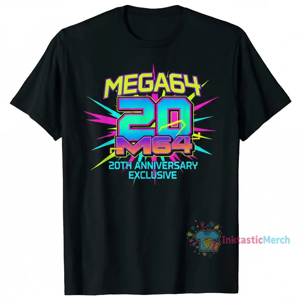 Bring your style to life with the Mega64 20th anniversary exclusives logo shirt today!