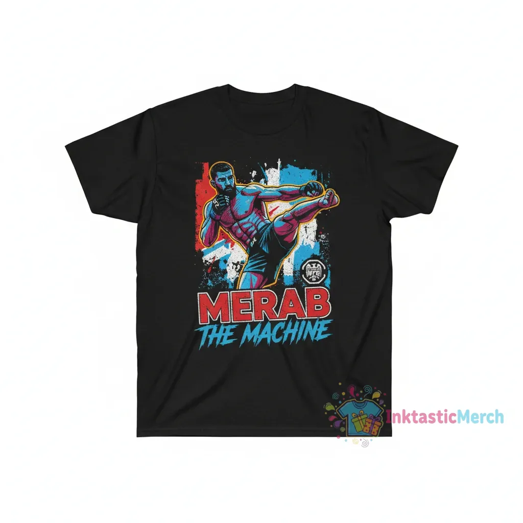 This Merab Dvalishvili fighter tee is more than just fan apparel; it’s a versatile addition to your wardrobe. Its durable construction and fade-resistant print mean you can wear it proudly to fight nights, gym sessions, casual outings, or everyday errands. The high-quality print ensures the signature graphic remains bold and clear, representing your support for Merab Dvalishvili without compromise. Don’t settle for less – choose a shirt that’s as resilient and impactful as ‘The Machine’ himself. Click ‘Add to Cart’ now and elevate your fan game!