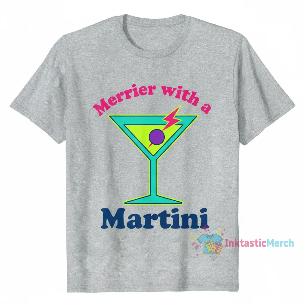 Merrier with a Martini shirt for sale! Get ready to spread some cheer with this fun and stylish tee.