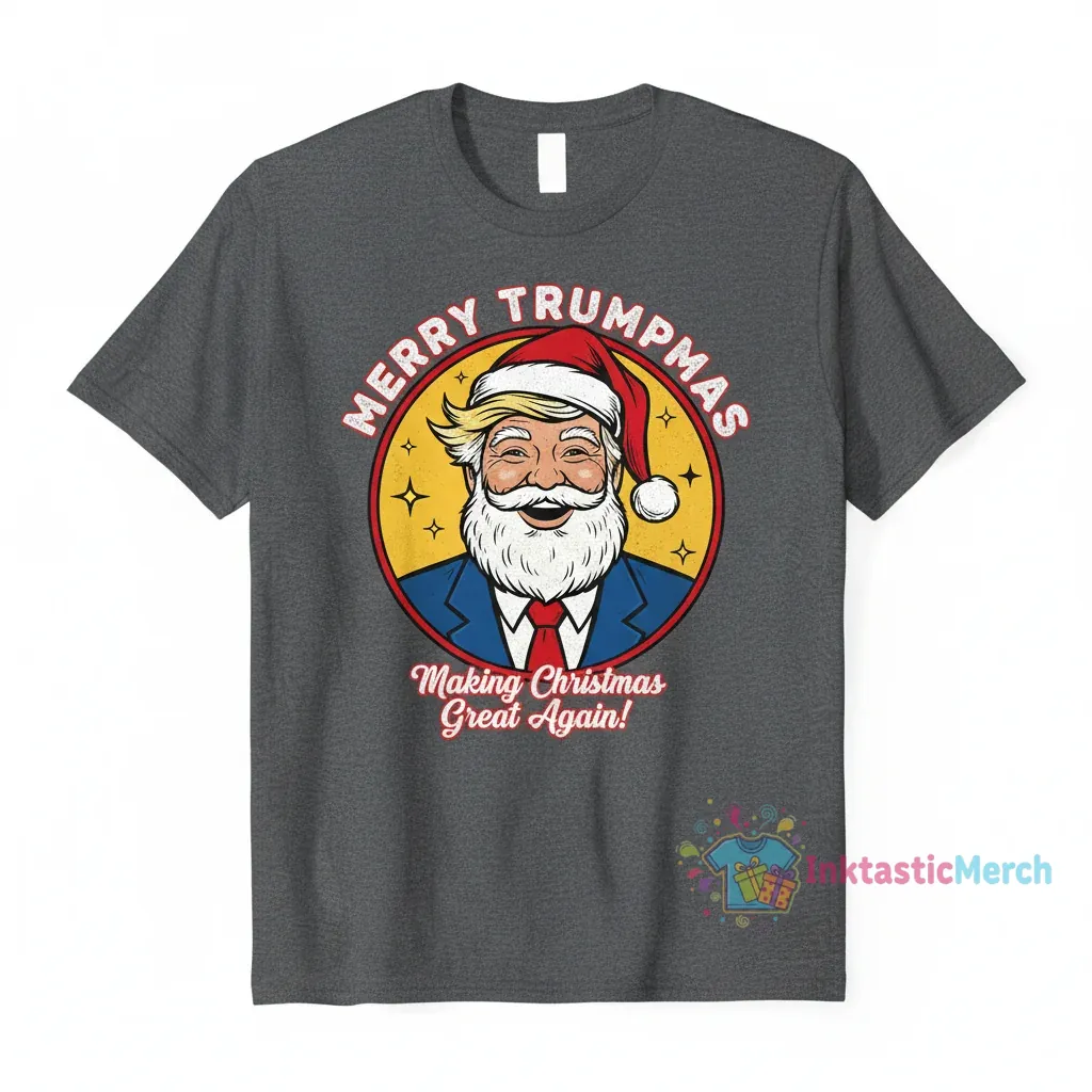 Get ready to spread some holiday cheer with the Merry Trumpmas Christmas Santa Shirt from InktasticMerch. This festive tee is crafted for maximum comfort, featuring ultra-soft fabric that feels great for lounging or heading out to holiday events. Its high-quality material ensures it will remain a favorite for many Christmases to come, holding its shape and vibrant print wash after wash.