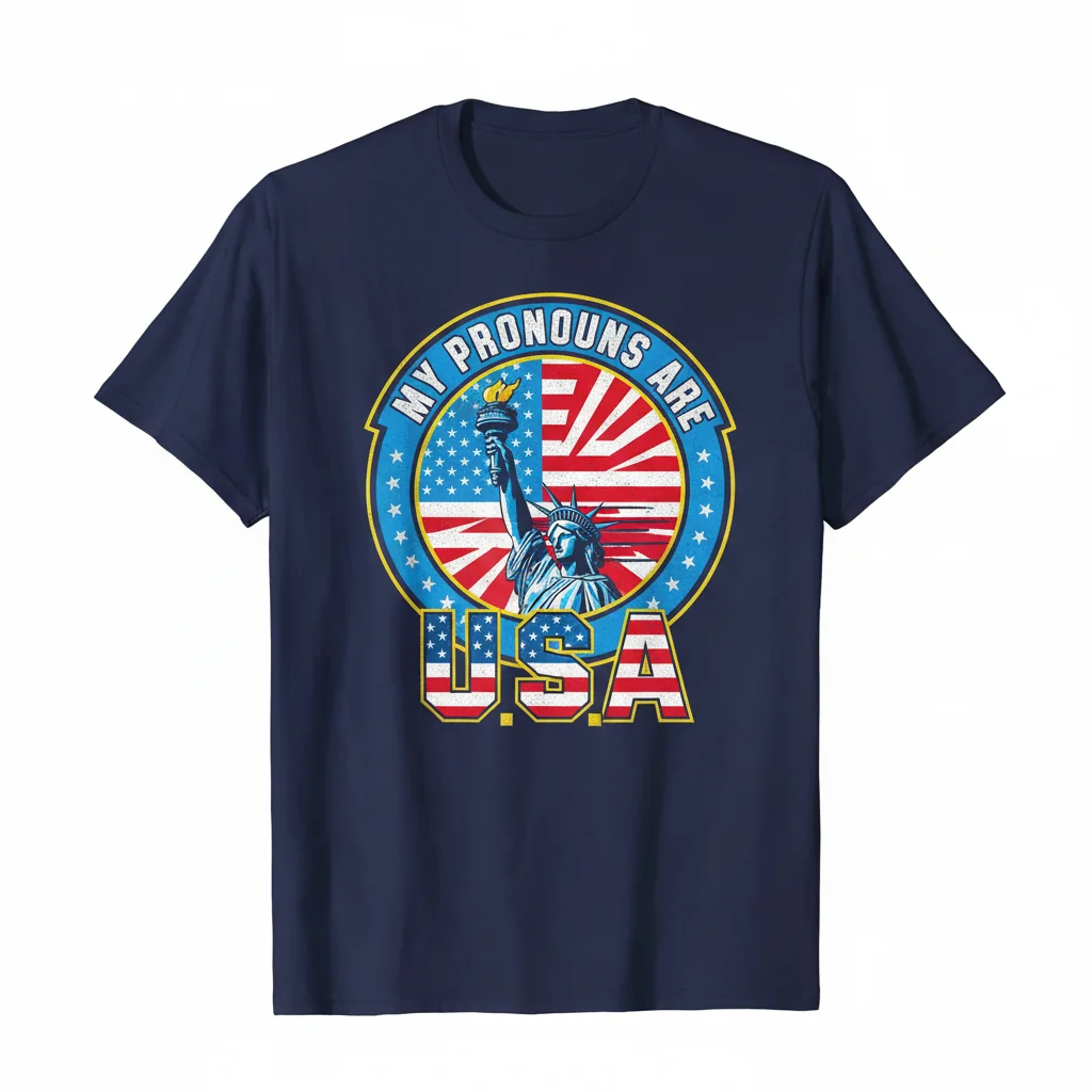 Mi Declaración ‘Mis Pronombres Son USA’ comienza con un diseño que es más que tela; es un lienzo de expresión personal y orgullo. Esta obra de arte original está inspirada en la creencia de que cada individuo merece ser visto y celebrar su identidad con audacia y gracia. Fusionando un mensaje significativo con un toque de patriotismo, esta camiseta fue creada para aquellos que llevan su verdad con honor, uniendo la autoexpresión con el espíritu de unidad. Es una declaración de principios, diseñada para resonar profundamente y reflejar el corazón de quien la lleva.