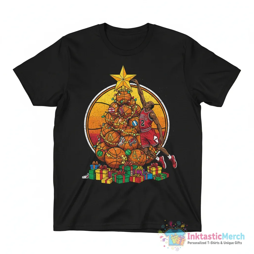 Get into the holiday spirit with this awesome Michael Jordan basketball Christmas shirt! This unique tee features iconic artwork of Michael Jordan adding the star to a Christmas tree, blending your love for basketball and the festive season. It’s the perfect way to show off your team spirit and holiday cheer all at once. Made for comfort and style, this shirt is a slam dunk for any fan!