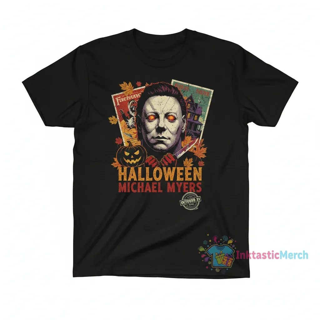 Experience the chilling spirit of Halloween with this Michael Myers Halloween graphic collage vintage t-shirt. Featuring a unique and eye-catching collage design that pays homage to the iconic horror character, this tee is perfect for fans of the Halloween movie franchise and vintage horror aesthetics. Whether you’re attending a costume party, trick-or-treating, or simply want to showcase your love for classic slasher films, this t-shirt is a must-have addition to your seasonal wardrobe. The vintage-inspired graphic ensures a retro feel, making it a standout piece that combines nostalgia with contemporary style. It’s designed for comfort and durability, ensuring you can wear your frights year after year.