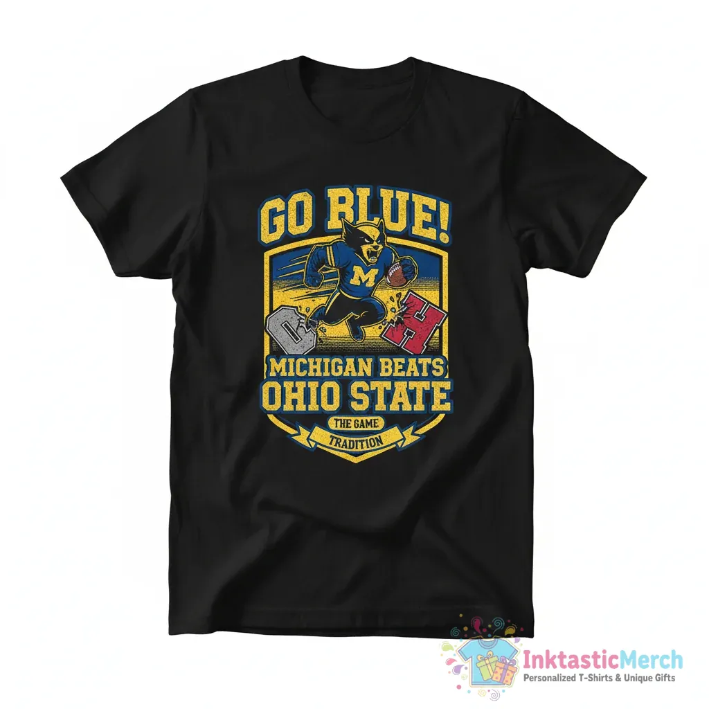Show your ultimate pride with the Michigan Wolverines Beat Ohio State Buckeyes Go Blue shirt from InktasticMerch. Crafted from ultra-soft, premium fabric for supreme comfort and built with durable, high-quality materials, this tee is designed to last and celebrate a legendary victory in style. Wear your team loyalty loud and proud with this must-have shirt, a statement of victory and belonging.