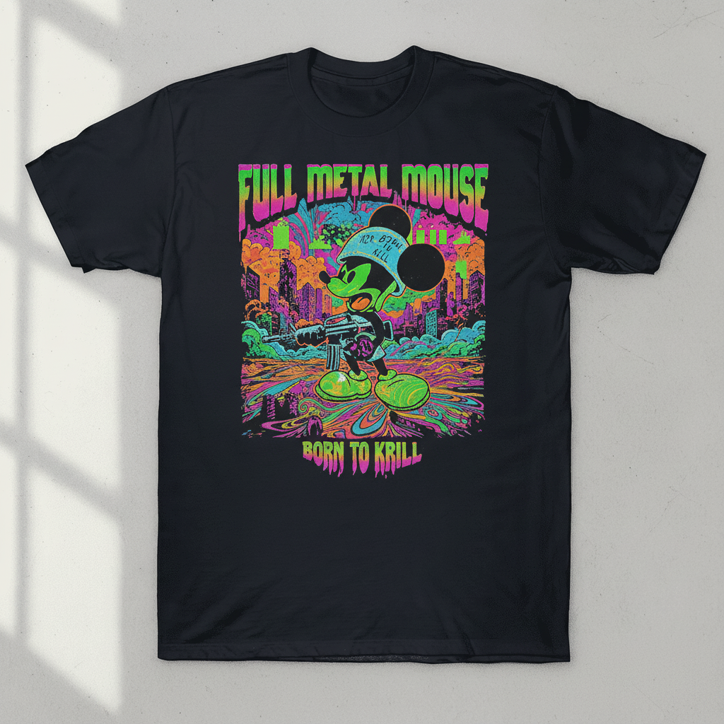 Unleash your inner rebel with the Mickey Full Metal Mouse Born To Kill T-shirt. This unique tee blends iconic pop culture with a fierce attitude, making it a standout piece for any wardrobe. Designed for true fans, it features a striking graphic that’s sure to turn heads. Crafted from premium fabric, this shirt offers exceptional comfort and durability, perfect for everyday wear. Whether you’re hitting the streets or lounging at home, the Mickey Full Metal Mouse tee lets you express your bold personality with style.