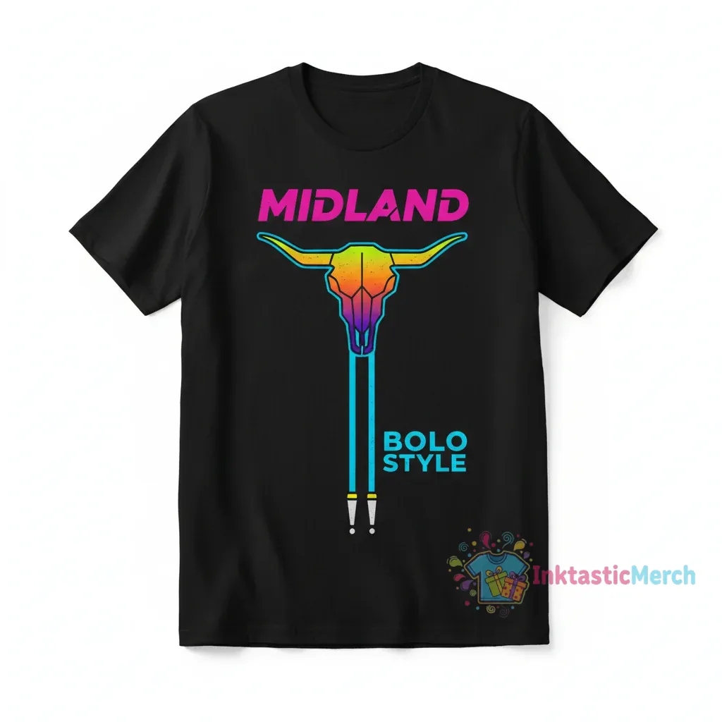 Elevate your casual style with the Midland Bolo Tie Shirt, a statement piece that blends comfort with a cool, laid-back vibe and features distinctive bolo tie artwork. Crafted with incredibly soft fabric and a versatile unisex fit, this shirt embodies a cool, confident lifestyle, offering a fresh take on everyday wear from inktasticmerch.com.