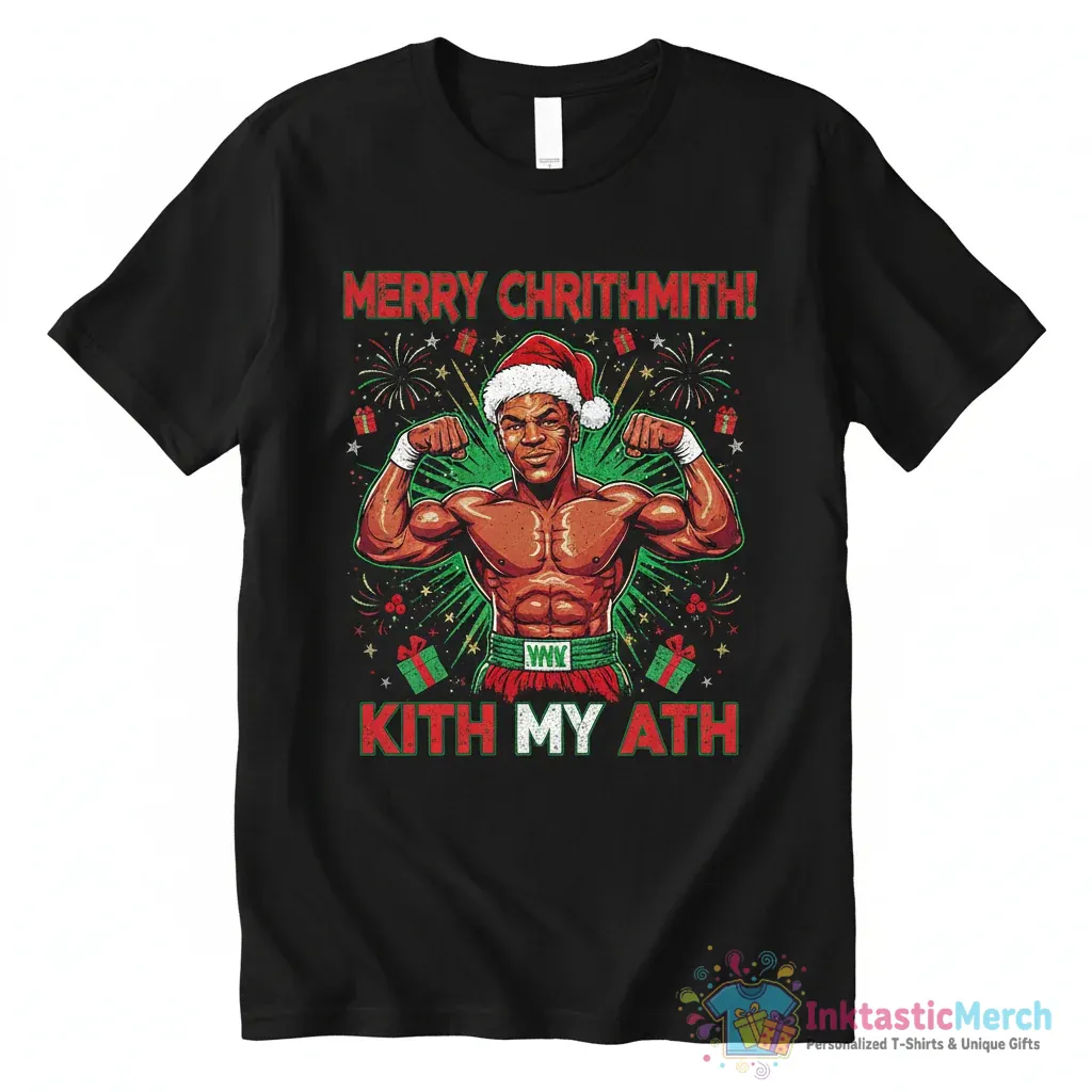 Get into the holiday spirit with the hilarious Mike Tyson Merry Christmas Kiss My Ath Merry Chrithmith shirt from InktasticMerch. Made with premium quality materials, this shirt offers both exceptional comfort and a durable design that will last through many festive seasons. Its eye-catching graphic is sure to be a conversation starter at any holiday gathering or casual get-together.