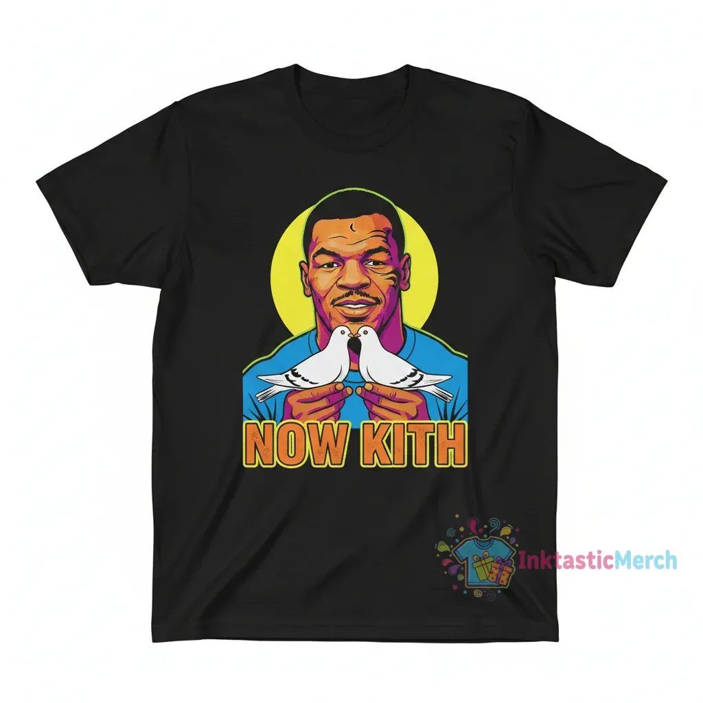 Step up your casual game with the Mike Tyson Now Kith shirt from inktasticmerch.com. This wearable piece of art combines the legendary presence of Mike Tyson with the contemporary cool of Kith, designed for those who appreciate bold graphics and comfortable style. Crafted for maximum comfort and featuring exclusive artwork, this tee offers a blend of athletic legacy and street-smart fashion.