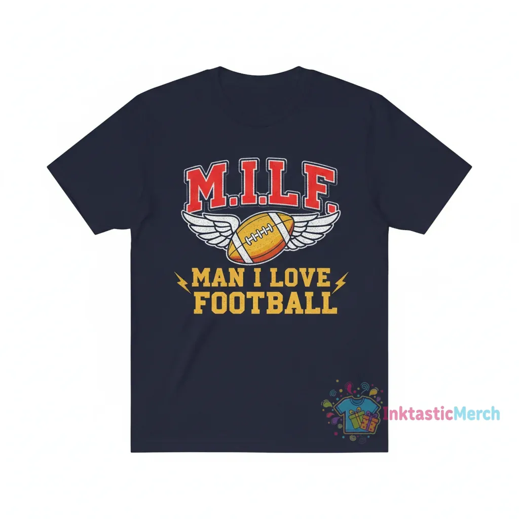 MILF Man I Love Football, this isn’t just a shirt; it’s a declaration of passion for the game. We designed this tee to capture the electric energy of game day, the roar of the crowd, and the thrill of every touchdown. It’s for the fans who live and breathe football, who wear their team colors with pride, and who understand that the love for the sport is a powerful, unifying force. This design is an homage to that unwavering spirit, celebrating the joy and camaraderie that football brings into our lives. It’s more than just fabric; it’s a piece of wearable art that resonates with your deepest sports enthusiasm.