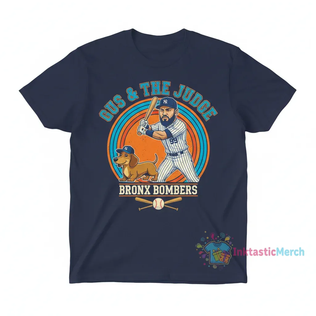 Show your love for adorable Miniature Dachshund Gus and baseball legend Aaron Judge with this uniquely designed t-shirt from InktasticMerch. Crafted for the discerning fan, this shirt is engineered for maximum comfort with premium, pre-shrunk fabric that maintains its perfect size and shape, wash after wash, ensuring it’s a staple in your wardrobe for years to come.