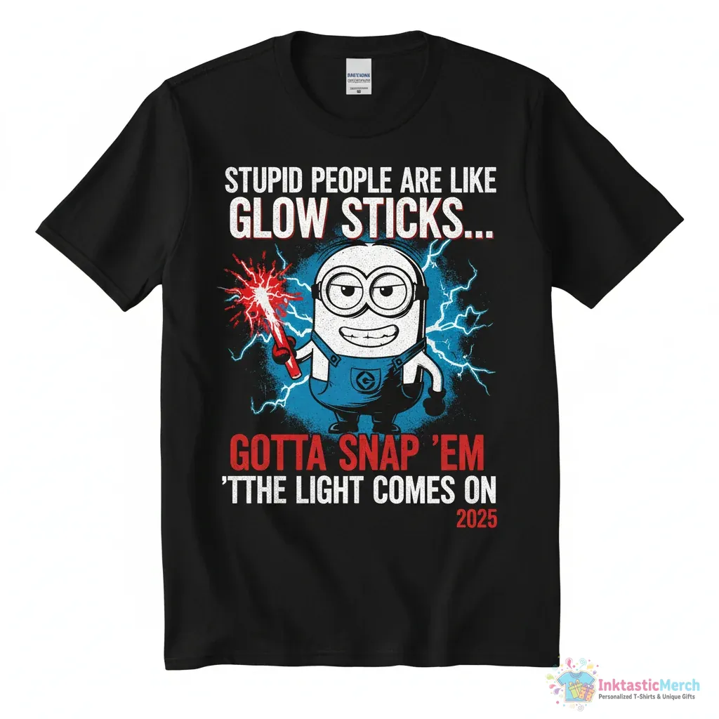 Show off your unique sense of humor with the “Minion Stupid People Are Like Glow Sticks Out of Them Until the Light Comes On 2025” shirt from InktasticMerch. Crafted for comfort and durability with ultra-soft fabric and a high-quality print, this shirt is more than just clothing – it’s a statement designed to spread cheer and spark conversations.