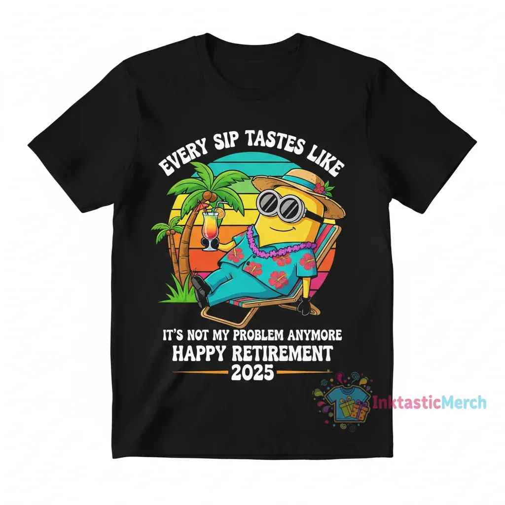 Celebrate retirement in style with the Minions Hawaiian “Not My Problem Anymore” Happy Retirement 2025 Shirt, perfect for embracing a well-deserved break. Crafted for exceptional comfort and lasting wear from 100% ring-spun cotton with a modern retail fit, this shirt from InktasticMerch ensures you can announce your retirement or commemorate a milestone year with a witty and durable garment.