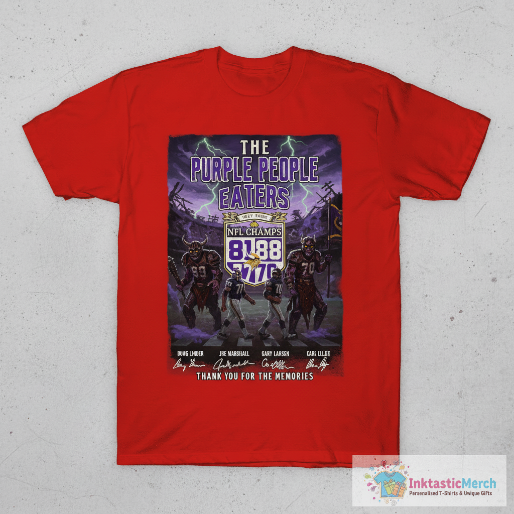 Bring your style to life with the Minnesota Vikings Purple People Eaters Nfl Champs Thank You For The Memories Signatures T-Shirt today!