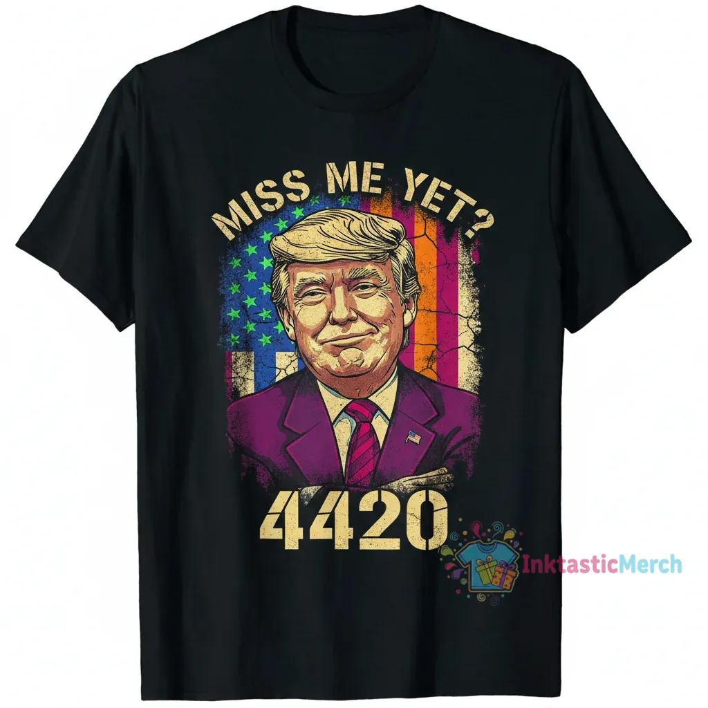 To maintain the quality and vibrancy of your Miss Me Yet Donald Trump 4420 T-Shirt, machine wash cold, inside-out, with like colors. Tumble dry low or hang dry for best results. Avoid using bleach or harsh detergents. This versatile t-shirt pairs effortlessly with jeans, shorts, or layering under jackets, making it suitable for casual outings, political rallies, or as a statement piece in your everyday attire. Its timeless design ensures it remains a go-to item for seasons to come.