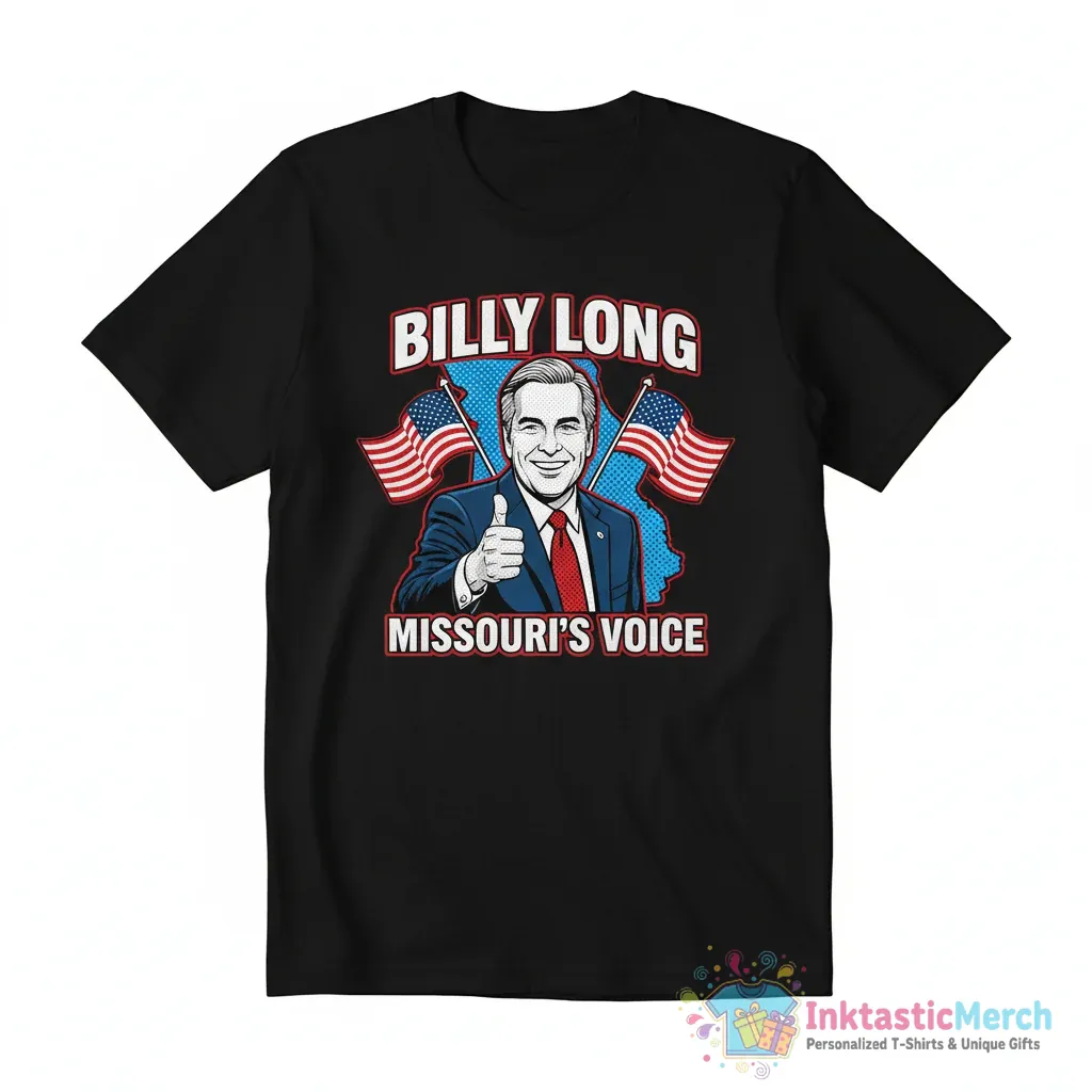 Show your support for Missouri Congressman Billy Long with this premium quality T-shirt from InktasticMerch. Crafted from high-quality materials for durability and a great feel, this shirt offers superior comfort and a unique design that stands out, making it a perfect addition to any wardrobe for expressing your political pride.