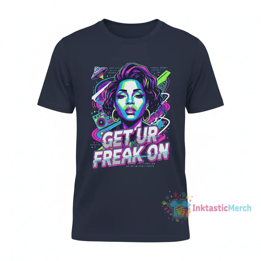 Celebrate the iconic sound and style of Missy Elliott with this premium ‘Get Ur Freak On’ graphic t-shirt, a must-have for any fan of 90s and 2000s hip hop culture, crafted from 100% ring-spun cotton for exceptional softness and durability. You can find this and more at inktasticmerch.com.