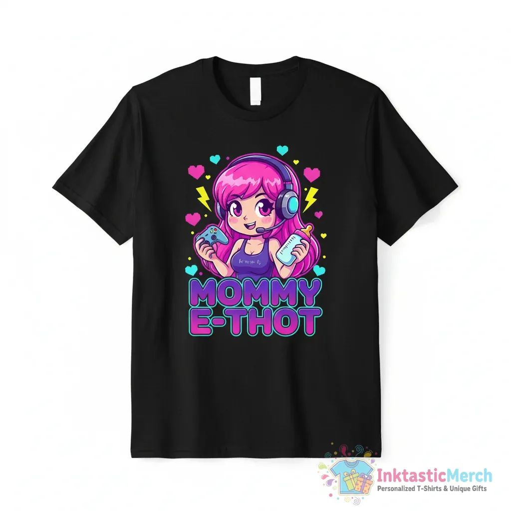 Make a bold statement with the MOMMY E-THOT T-shirt from InktasticMerch. Crafted with care from premium quality fabric, this tee offers a comfortable and stylish addition to any wardrobe, designed for those who embrace their unique style. Its eye-catching graphic is printed with precision on ultra-soft fabric for maximum comfort, making it a conversation starter and a way to showcase your personality.