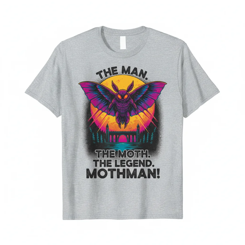 The Man. The Moth. The Legend. MOTHMAN! This essential tee isn’t just clothing; it’s a wearable piece of art that invites you to embrace the mysterious and the extraordinary. Designed for those who find beauty in the unknown and inspiration in legend, this shirt is a daily reminder to explore the intriguing stories that shape our world.