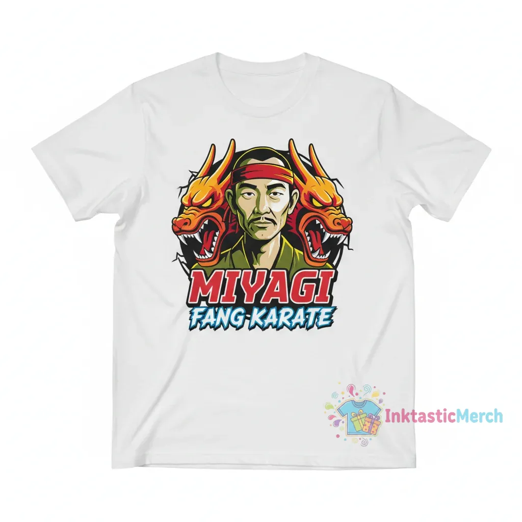 Step into the dojo with our awesome Mr. Miyagi Miyagi Fang Karate T-Shirt! Inspired by the legendary sensei, this tee is perfect for any fan of martial arts movies and the iconic character. Show off your love for wisdom, patience, and the art of karate with this cool and comfortable shirt. It’s more than just a t-shirt; it’s a statement piece that celebrates a true icon.