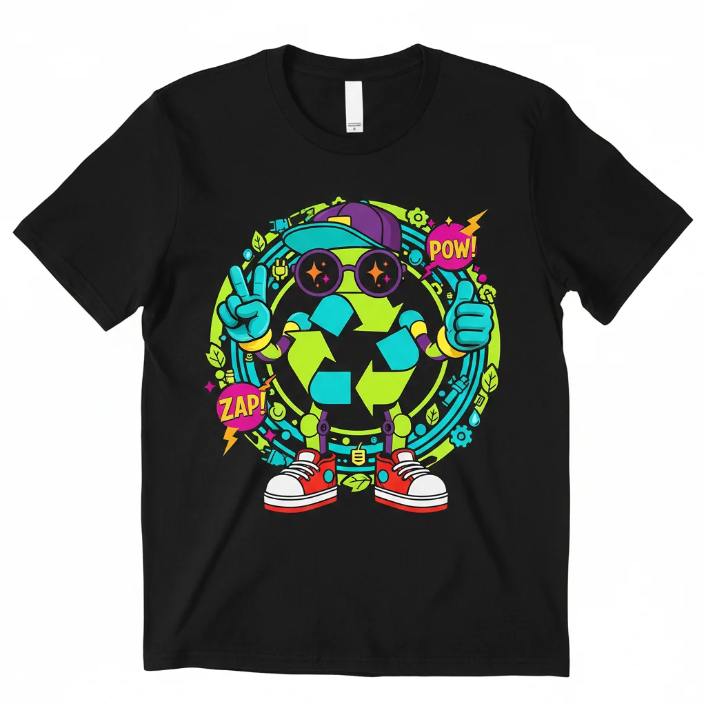 This isn’t just another t-shirt; it’s a statement piece that speaks volumes without saying a word. It’s perfect for casual outings, creative endeavors, or simply enjoying a moment of quiet reflection. Let Mr. Recycle inspire your daily choices and add a touch of conscious charm to your wardrobe. Make it an essential part of your story, a constant reminder of the positive change you bring to the world.
