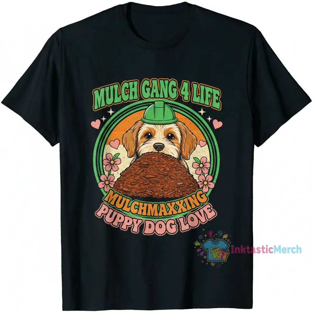 Bring your style to life with the Mulch Gang 4 Life Mulchmaxxing Puppy Dog Love shirt today!