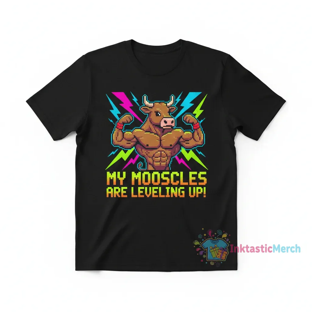- Unique “My Mooscles Are Getting Bigger – Meme” graphic for a fun, standout look.