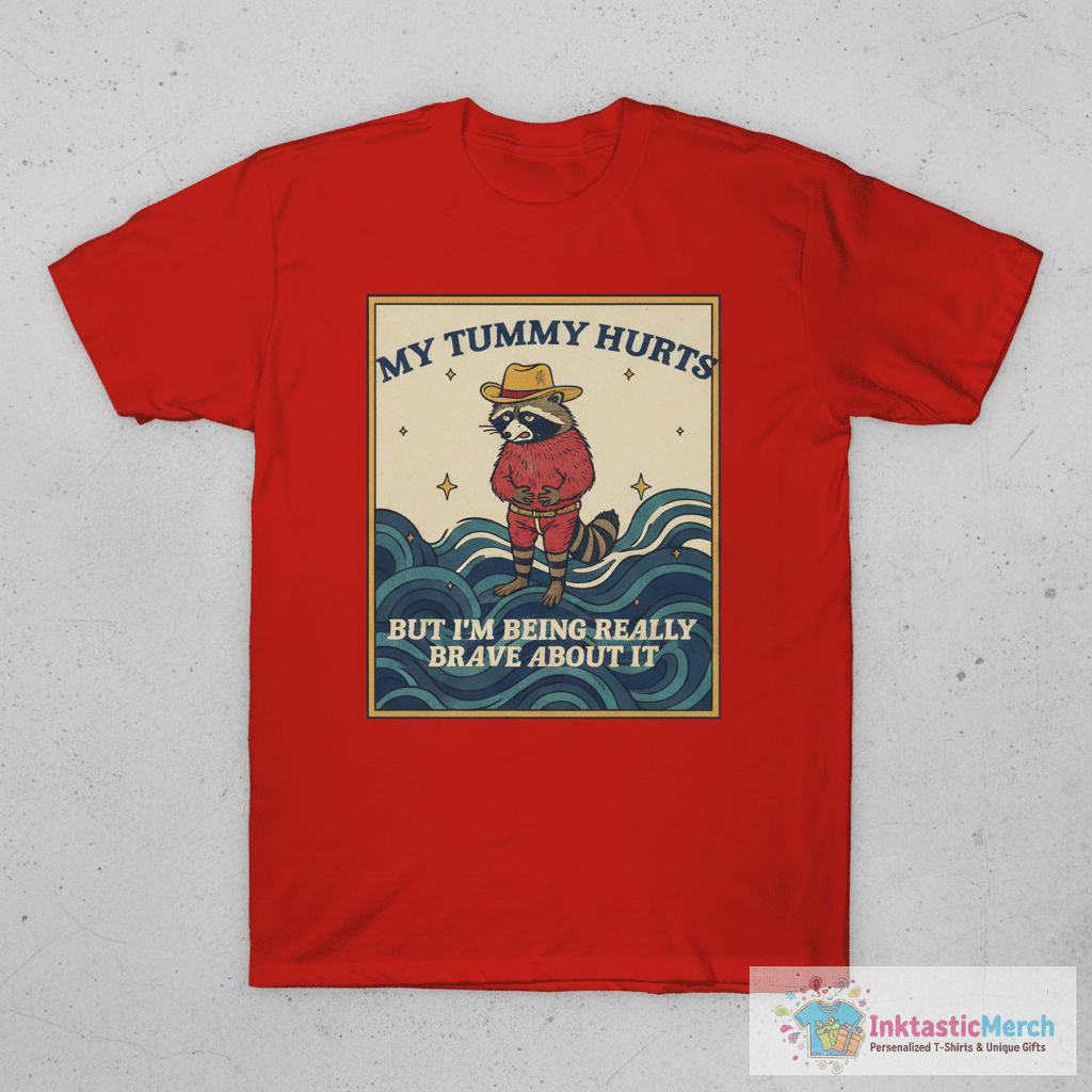 Show off your brave spirit with the “My Tummy Hurts But I’m Being Really Brave About It” T-shirt. This tee is perfect for anyone who understands that sometimes, just showing up is a big deal. Featuring a hilarious raccoon meme, this shirt is sure to get a chuckle and spark conversations. It’s more than just a funny shirt; it’s a relatable statement piece that adds a touch of humor to your everyday wardrobe. Whether you’re lounging at home or out and about, this tee lets you express your inner feelings with a smile.