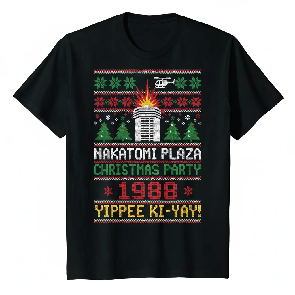 This shirt is perfect for holiday parties, movie nights, casual wear, or as a thoughtful gift for die-hard fans of classic action films. It’s an excellent choice for anyone looking to add a touch of unique humor and nostalgia to their ugly Christmas sweater collection, standing out from the crowd with a truly iconic design.