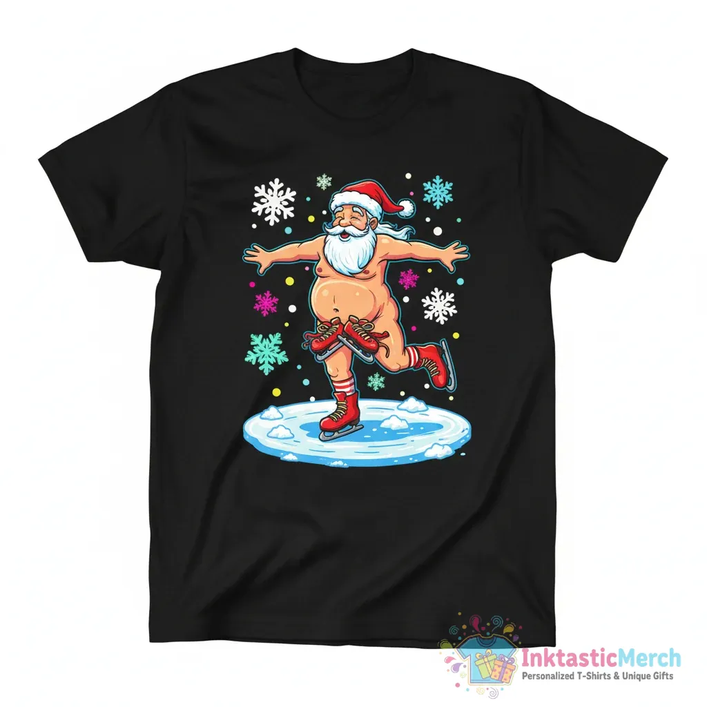Embrace the quirky side of the festive season with the hilariously festive Naked Santa Claus Ice Skating Nude Ugly Christmas shirt from InktasticMerch. Made from premium quality fabric, this shirt offers both exceptional comfort and lasting durability, ensuring it’s your go-to choice for all your winter festivities. Stand out from the crowd with this one-of-a-kind holiday apparel that adds a playful and daring twist to traditional ugly Christmas sweaters.