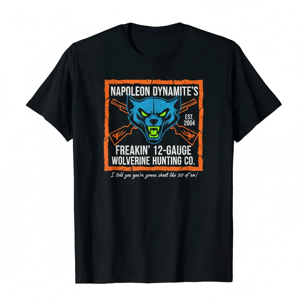 Show your love for Napoleon Dynamite with a t-shirt that stands the test of time. Our Essential T-Shirt features bold, eye-catching graphics that perfectly capture the iconic humor of the “Napoleon Dynamite’s Freakin’ 12-Gauge Wolverine Hunting Company.” Unlike standard prints that crack and fade, our advanced printing technology ensures your design remains vibrant and sharp, wash after wash. Make a statement without compromising on quality or style.