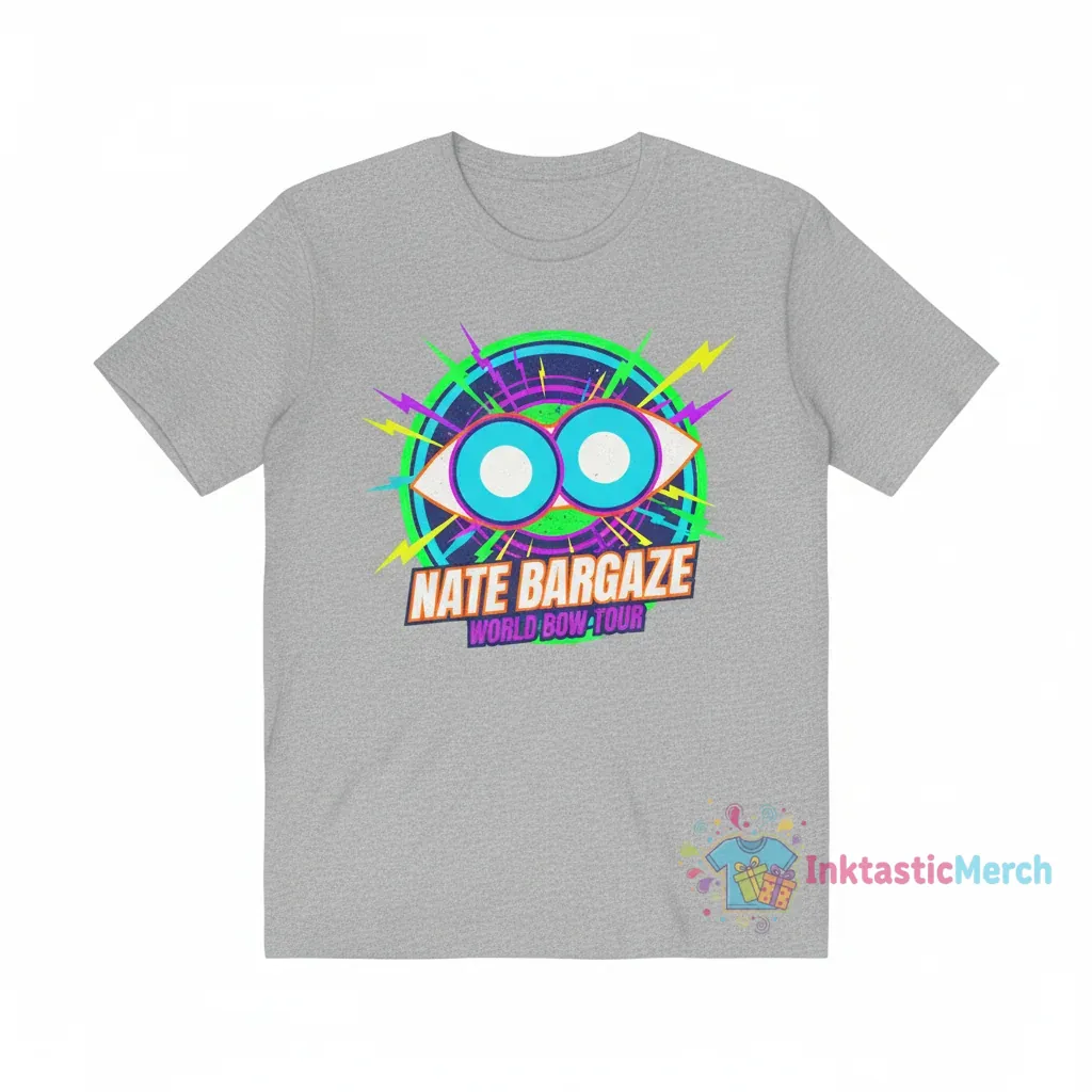 Get ready to turn heads and spark conversations with the Nate Bargatze Big Dumb Eyes World Tour T-shirt. Inspired by the one and only Nate Bargatze, this shirt features the iconic “Big Dumb Eyes” design, making it a must-have for any true fan. Whether you’re heading to a comedy show, hanging out with friends, or just want to express your sense of humor, this t-shirt is the perfect addition to your wardrobe. It’s more than just a shirt; it’s a statement piece that celebrates the genius of Nate Bargatze.